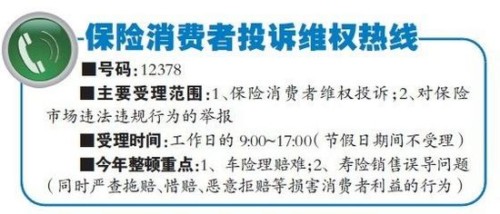 據(jù)河北保監(jiān)局相關(guān)人士介紹,昨日是12378保險(xiǎn)消費(fèi)者投訴維權(quán)熱線開通的首日,已經(jīng)有保險(xiǎn)消費(fèi)者打進(jìn)電話,反映其在保險(xiǎn)消費(fèi)購(gòu)買當(dāng)中遇到的一些問題。