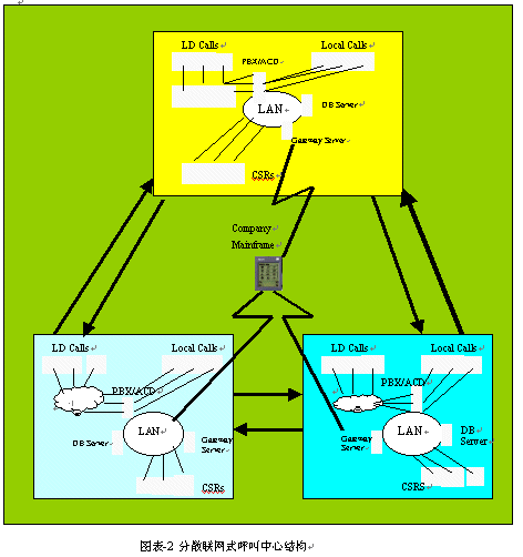 。。建立內(nèi)部專(zhuān)用網(wǎng)的目的是有效地實(shí)現(xiàn)各呼叫中心之間的同級(jí)來(lái)話(huà)路由,使來(lái)話(huà)的語(yǔ)音信息和數(shù)據(jù)信息能在各個(gè)呼叫中心之間流轉(zhuǎn)。通常情況下,這種形式的呼叫中心可以以一種預(yù)先確定的標(biāo)準(zhǔn),有效地分配溢出的來(lái)話(huà)。這一類(lèi)型的來(lái)話(huà)路由分配在虛擬呼叫中心中則沒(méi)有被考慮進(jìn)去。