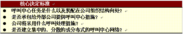 。。當(dāng)一個公司考慮將呼叫中心納入其整體服務(wù)策略的時候,在具體步驟開始以前必須作一些基本的決定。重要的是評估該公司當(dāng)前的服務(wù)策略并考慮可能的選擇范圍。本章簡要總結(jié)了建立呼叫中心可能發(fā)生的一些典型的運(yùn)營管理問題。