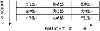 需要指出的是這5種程度的客戶關系類型并不是一個簡單的從優(yōu)到劣的順序,企業(yè)所能采用的客戶關系的類型一般是由它的產品以及客戶決定的, 比如寶潔公司它的洗發(fā)水、洗衣粉的客戶之間是一種被動性的關系:寶潔設立客戶抱怨處理機構,處理客戶投訴,改進產品;但是寶潔和沃爾瑪特之間卻可以建立互惠互利的伙伴性關系?铺乩崭鶕髽I(yè)的客戶數(shù)量以及企業(yè)產品的邊際利潤水平提供了一個表格幫助企業(yè)選擇自己和是的客戶關系類型。