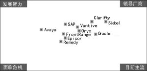 就CRM的廠商來講,市場份額比較分散,而且競爭態(tài)勢變化很快。實際上,除了前五名的廠商外,其它廠商的市場份額不超過2%,其中大多數(shù)CRM廠商是在過去18個月才推出CRM產(chǎn)品。