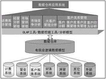 圖1 電信行業(yè)數(shù)據(jù)倉庫系統(tǒng)解決方案體系結(jié)構(gòu)圖