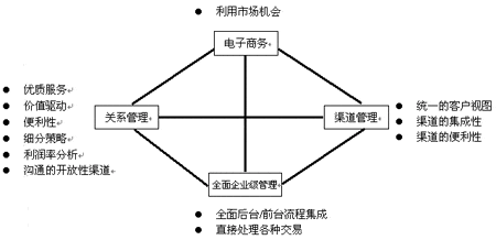 本文中,將針對(duì)國(guó)外金融企業(yè)對(duì)CRM的看法,提出一種全面的對(duì)CRM的看法,我們將從四個(gè)角度來描述,它們分別是電子商務(wù)(E-business)、渠道管理(Channel management)、關(guān)系管理(Relationships)、全面企業(yè)級(jí)管理(Management of the total enterprise),取第一個(gè)字母組合為ECRM。
