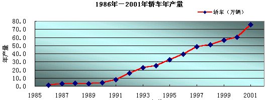 1997年上汽集團與美國通用的合資企業(yè)上海通用公司成立,產(chǎn)品定位在"別克"中高檔汽車上;1998年本田公司替代標致公司成為廣州的合作伙伴,產(chǎn)品定位在"雅閣"中高檔汽車。產(chǎn)品品種的豐富以及生產(chǎn)能力的擴大,為今后中高檔汽車市場需求的快速增長奠定了穩(wěn)固的基礎(chǔ)。