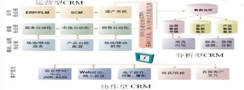 從上圖中不難看出,CRM的三種類型:運營型、協作型、分析型。前兩種形式只是一些簡單的記錄,把銀行業(yè)所需要的客戶基本檔案的收集,非常簡單。真正能對銀行經營產生效益在于分析型CRM,其重點在于對相關數據的分析與挖掘----BI,強調提供詳細分析。