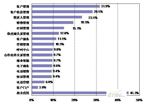 Logix(4.1%)和Microsoft CRM(4.1%)等;另有24.7%的企業(yè)是自主開發(fā)的CRM系統(tǒng)。