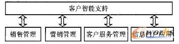 (5)客戶智能支持?蛻糁悄苤С痔幱谙到y(tǒng)功能平臺的核心地位,若把圖2中的5個模塊比作是人體的不同功能器官,客戶智能支持就相當于人的“大腦”。雖然CRM應用系統(tǒng)中其他模塊也具各一定的數(shù)據(jù)統(tǒng)計分析能力,但它們的主要功能定位在業(yè)務操作和客戶協(xié)作層面,客戶智能支持模塊則是完整的、以輔助決策為設計目標的分析型應用,其基礎數(shù)據(jù)來自于各CRM業(yè)務流程運行產(chǎn)生的大量數(shù)據(jù)及企業(yè)其他應用系統(tǒng)數(shù)據(jù)。