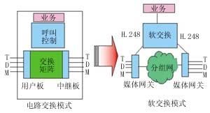 在電路交換網(wǎng)中,呼叫控制、業(yè)務(wù)提供以及交換矩陣均集中在一個交換系統(tǒng)中,而軟交換的主要設(shè)計思想是業(yè)務(wù)/控制與傳送/接入分離,各實體之間通過標(biāo)準(zhǔn)的協(xié)議進(jìn)行連接和通信,以便在網(wǎng)上更加靈活地提供業(yè)務(wù),見圖1。更具體地講,軟交換是一個基于軟件的分布式交換/控制平臺,它將呼叫控制功能從網(wǎng)關(guān)中分離出來,開放業(yè)務(wù)、控制、接入和交換間的協(xié)議,從而真正實現(xiàn)多廠家的網(wǎng)絡(luò)運(yùn)營環(huán)境,并可以方便地在網(wǎng)上引入多種業(yè)務(wù)。