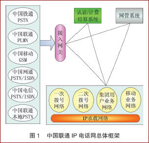 中國聯(lián)通IP電話網(wǎng)自1999年6月入運(yùn)營以來,經(jīng)過一期、二期和三期工的建設(shè),目前,網(wǎng)絡(luò)已覆蓋中國329個(gè)地市,E1端口規(guī)模超過1.8萬個(gè),成為全球最的IP電話網(wǎng)絡(luò)。網(wǎng)絡(luò)的話務(wù)量已經(jīng)達(dá)到月近10億分鐘,已是世界上流量最大的電話網(wǎng)絡(luò)。中國聯(lián)通IP電話網(wǎng)總體框架圖1所示,包括IP承載網(wǎng)絡(luò)、業(yè)務(wù)網(wǎng)絡(luò)(包式括一次撥號業(yè)務(wù)網(wǎng)、二次撥號業(yè)務(wù)網(wǎng)、集團(tuán)用戶業(yè)務(wù)網(wǎng)和移動(dòng)用戶業(yè)務(wù)網(wǎng))、IP電話網(wǎng)絡(luò)管理設(shè)備(如計(jì)費(fèi)結(jié)算系統(tǒng)、網(wǎng)管系統(tǒng)等)、與各類本地網(wǎng)絡(luò)連接的接入網(wǎng)關(guān)等部分。