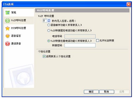 如果你使用的電話交換機(jī)比較簡單,沒有內(nèi)置有語音引導(dǎo)號(hào)碼,你可以使用 ITA的轉(zhuǎn)接任意電話功能來實(shí)現(xiàn),設(shè)置0秒啟動(dòng),將轉(zhuǎn)接密碼置為空,配置如下: