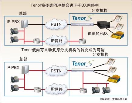 能使H.323和SIP終端得以繼續(xù)適用、還能在IP網(wǎng)絡(luò)中提供緊急呼叫(E911)服務(wù),這些性能使IP網(wǎng)關(guān)對(duì)運(yùn)營(yíng)商更具吸引力。寬騰公司從Tenor產(chǎn)品開(kāi)始瞄準(zhǔn)了企業(yè)用戶(hù)。