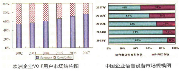 PBX設(shè)備市場規(guī)模在2007年將一舉超過傳統(tǒng)的PBX市場,IP通信的大規(guī)模部署和對傳統(tǒng)語音系統(tǒng)的替代已經(jīng)不可動(dòng)搖。