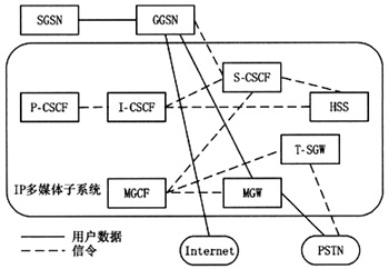 SIP信令消息從移動(dòng)用戶發(fā)起,經(jīng)UMTS(universalmobiletelecommunicationssystem,通用移動(dòng)通信系統(tǒng))陸地?zé)o線接入網(wǎng)絡(luò)進(jìn)入核心網(wǎng),通過SGSN(serving