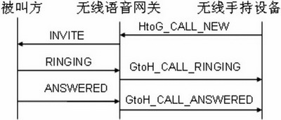 當(dāng)用戶通過無線手持設(shè)備撥打一個號碼時,無線手持設(shè)備將發(fā)送一個HtoG_CALL_ NEW的內(nèi)部會話信令連同呼叫的號碼給無線語音網(wǎng)關(guān),無線語音網(wǎng)關(guān)收到該信令后,將根據(jù)該信令構(gòu)造相應(yīng)的SIP消息并發(fā)送到外部網(wǎng)絡(luò)。當(dāng)無線語音網(wǎng)關(guān)收到來自被叫方表示振鈴信息的暫時應(yīng)答RINGING時,將發(fā)送一個GtoH_CALL_RINGING的內(nèi)部會話信令給手持設(shè)備。當(dāng)無線語音網(wǎng)關(guān)收到來自被叫方表示應(yīng)答的信息ANSWERED時,語音網(wǎng)關(guān)將啟動RTP線程并發(fā)送一個GtoH_CALL_ANSWERED的內(nèi)部會話信令給手持設(shè)備以通知被叫方已應(yīng)答。此時手持設(shè)備開啟語音進程,與被叫方實現(xiàn)通話。