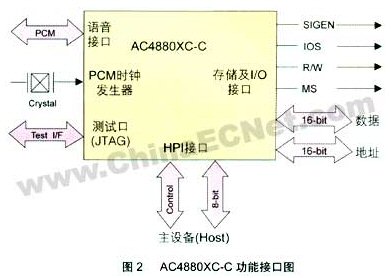 作為本系統(tǒng)中的核心部分,語音處理采用以色列audiocodes公司生產(chǎn)的專用多通道語音處理芯片ac4880xc-c。它具有以下特點(diǎn):