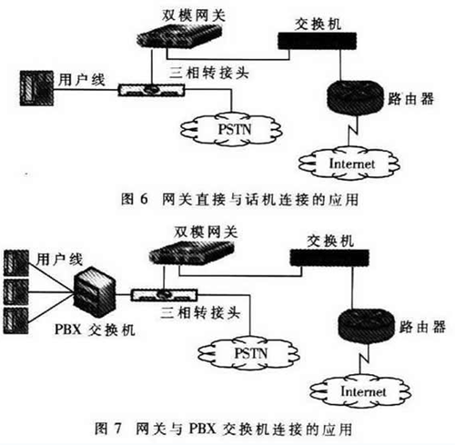 “雙模”是指VoIP和PSTN兩種模式。雙模網(wǎng)關(guān)是一種同時連接PSTN網(wǎng)絡(luò)和VoIP網(wǎng)絡(luò)并能在兩者之間自動切換的用戶端網(wǎng)關(guān)設(shè)備。雙模網(wǎng)關(guān)可以使用