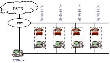 PBX毫無疑問是CTI的又一次發(fā)展,它不再是兩網(wǎng)簡單的加,它徹底地去掉了一套昂貴的PBX網(wǎng)絡(luò)及兩網(wǎng)連接設(shè)備,電話網(wǎng)絡(luò)僅成為服務(wù)對象接入的一個手段,這種系統(tǒng)結(jié)構(gòu)的設(shè)計使得呼叫中心的成本至少降低了一半,同時由于開放的
