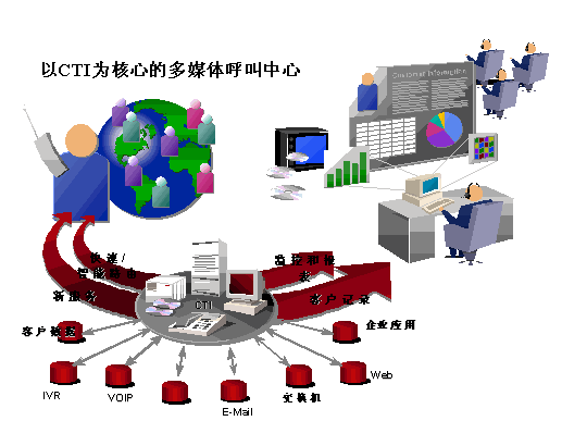 將企業(yè)現(xiàn)有的互聯(lián)網(wǎng)網(wǎng)頁服務與呼叫中心的電話服務相結(jié)合,在使企業(yè)有限的資源產(chǎn)生最大效益的同時,也極大地豐富了客戶服務的方式,形成綜合的客戶服務網(wǎng)絡,滿足客戶的需求。優(yōu)利公司提供的融合呼叫中心和互聯(lián)網(wǎng)技術的解決方案與其它解決方案不同之處在于:其以CTI技術為核心的多媒體呼叫中心解決方案在設計開始,就將普通的語音電話與各種互聯(lián)網(wǎng)通信方式進行統(tǒng)一處理,這一前瞻性設計思想,為呼叫中心與互聯(lián)網(wǎng)技術深層次結(jié)合奠定了基礎。
