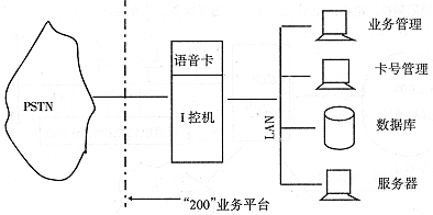 由于大多數(shù)“200”業(yè)務(wù)平臺采用的是上控機及語音卡系統(tǒng)(見圖1所示),由語音卡完成語音提示及交換處理,整體話務(wù)處理能力差,不太適合大中城市使用;另外其語音提示是經(jīng)過語音卡壓縮記錄在硬盤上,放音時經(jīng)讀盤、解壓恢復(fù)成語音信號,處理速度慢,交換占用總線資源,在話務(wù)量大時,易出現(xiàn)阻塞現(xiàn)象,并將影響現(xiàn)有的“200”業(yè)務(wù)。
