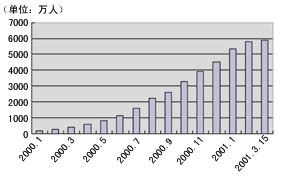 圖2 2000年1月~2001年3月15日OICQ注冊用戶數(shù)量增長情況