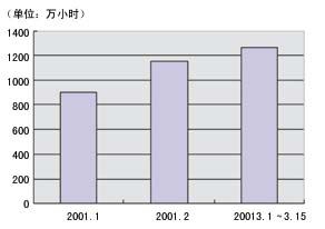 圖3 2001年1月~3月15日OICQ用戶每日平均在線時間
