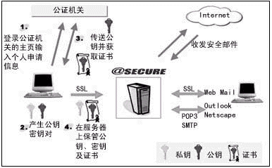 首先,用戶缺乏良好的防范意識,對E-mail安全性問題認識不夠,所以雖然現(xiàn)在的一些客戶端軟件都采用了一些數(shù)據(jù)加密和數(shù)字簽名技術(shù),但真正使用的用戶不多。當然,這也是由于這些技術(shù)本身操作復雜性引起的,所以,對于這個問題的解決方向應著眼于將加密和數(shù)字認證的任務交給服務器端。目前,如在@SECURE中采取的策略就是用戶將個人密鑰交給郵件服務器保管。