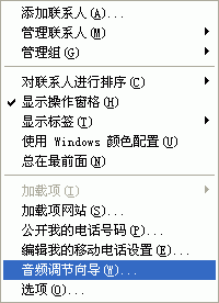 同樣,首先你應該在MSN Messenger中調節(jié)你的音頻和視頻設備。選擇工具->音頻調節(jié)向導(圖8)就會彈出“音頻和視頻調諧向導”的窗口(圖9),請根據(jù)這個向導的提示,一步一步進行測試和調節(jié)。