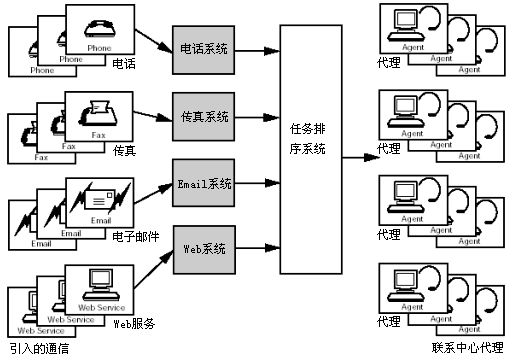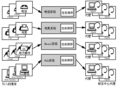 對通信媒體多樣性的支持是非常重要的,其中通信媒體包括電話、交互語音應(yīng)答、email、Web業(yè)務(wù)、傳真以及文件處理。為了處理通信媒體的多樣性,系統(tǒng)可能被分成多個子系統(tǒng),每個子系統(tǒng)對應(yīng)一種媒體類型。子系統(tǒng)將輸入的通信信息通知給負載序列,并且一直保留該通信信息,直到收到負載序列準備路由該通信信息的消息。然后子系統(tǒng)按照負載序列的指令將通信信息發(fā)送到正確的代理坐席或設(shè)備。