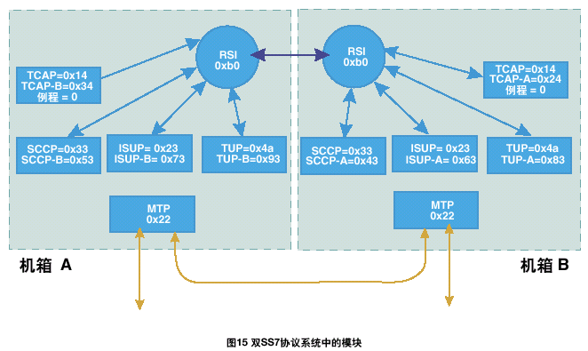 一個雙ISUP/TUP系統(tǒng)通過激活每個機箱中的一半電路協(xié)議狀態(tài)機進行工作。每個ISUP/TUP層通過本地MTP3發(fā)送所有的傳送流量。本地MTP3采用與相鄰SS7節(jié)點之間的本地鏈路進行傳輸,如果該鏈路發(fā)生故障,則采用機箱之間的SS7鏈路。