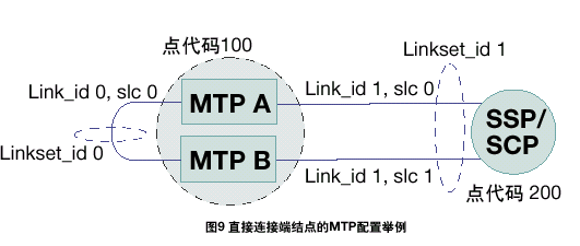 MTP A和MTP B之間的鏈路集的設(shè)置方法與任何其它SS7鏈路和鏈路集相同。如果有額外的數(shù)據(jù)設(shè)置表明此鏈路與其它連接相鄰節(jié)點的鏈路不同,則應(yīng)區(qū)別對待。