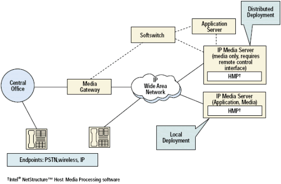 使用HMP軟件的典型的IP媒體服務(wù)器包括網(wǎng)絡(luò)語音提示, IVR, 語音郵件和會議服務(wù)器.