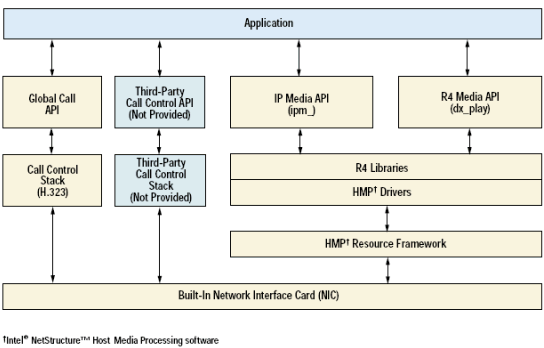 應(yīng)用程序在HMP軟件上開發(fā)時使用相同的R4和GlobalCall API, 和Dialogic Dialogic板卡