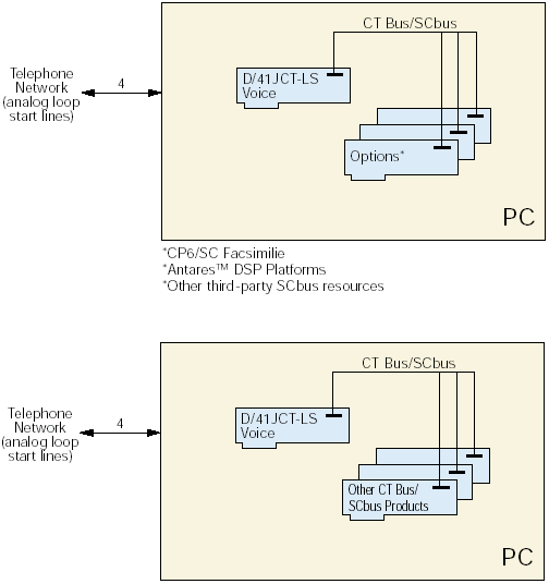 使用D/41JCT-LS板卡開發(fā)的復(fù)雜的多媒體通信系統(tǒng)集成了如語音處理、傳真、文本到語音轉(zhuǎn)換等功能。這些板卡與其他SC總線和CT