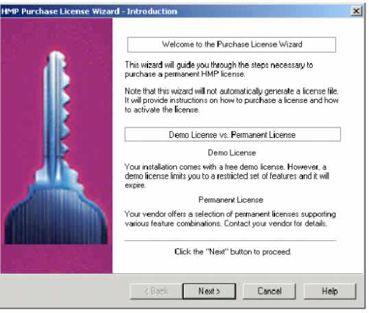 2. 在HMP許可證管理器窗口中(圖16),點 How to Purchase License...按鈕。HMP購買許可證導(dǎo)航將出現(xiàn)(圖17)。該向?qū)⒁徊讲街笇?dǎo)你購買一個永久的HMP許可證。
