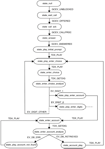 IVR參考程序(SimpleIvr)為想用R4和包括軟件開發(fā)包(SDK)的Global Call APIs 建立應(yīng)用程序的Dialogic用戶提供了演示代碼。該應(yīng)用程序用C++開發(fā),使用面向?qū)ο蟮姆椒ㄔ试S增加新的組件及對已有組件的重用。SimpleIvr應(yīng)用程序設(shè)計(jì)為單線程、異步,符合必要的性能需求,并使用了一些特殊的技術(shù),比如線程池,來處理長時間的運(yùn)轉(zhuǎn)。