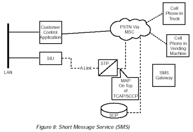 TCAP通過SS7網(wǎng)絡(luò)傳輸面向事務(wù)處理的數(shù)據(jù)并為諸如GSM-MAP和IS-41的應(yīng)用實施標準遠程操作服務(wù)單元業(yè)務(wù)。這些"應(yīng)用"提供智能網(wǎng)絡(luò)業(yè)務(wù),比如歸屬位置寄存器或者短消息服務(wù)。