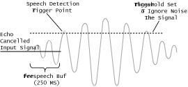 - 預(yù)緩沖(Pre-Speech Buffer) - 進入的語音數(shù)據(jù)被存在一個250毫秒的緩沖區(qū)里。 當檢測到語音能量,這一部分儲存在緩沖區(qū)里的語音就會被轉(zhuǎn)發(fā)到語音識別資源來被處理。這種預(yù)緩沖的里包含的關(guān)鍵信息在高識別準確率要求的時候是十分關(guān)鍵的。
