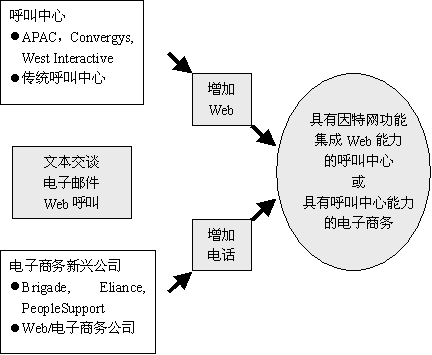 這些服務(wù)商對于那些已經(jīng)利用他們處理呼叫的企業(yè)來講,會成為首選的服務(wù)商。傳統(tǒng)的呼叫中心在尋找那些理解他們的需求的供應(yīng)商,他們可能會選擇具有電子商務(wù)服務(wù)處理能力的傳統(tǒng)服務(wù)公司。也許新興公司在評估這些公司提供的經(jīng)驗,穩(wěn)定性,和資源完整性后,也會選擇他們。